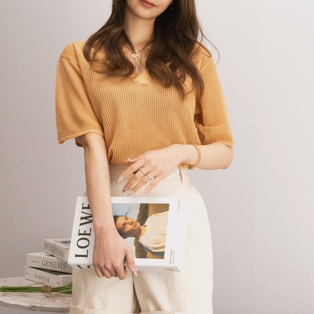 【デザイン】 衿付きのメッシュ編みニットです。 インナーにタンクトップやワンピースを合わせていつものコーディネートにデザインをプラス。 麻風の触り心地なので、さらっとしていて春夏に大活躍します。 ※ご覧のモニター環境や照明の関係で実物と多少色味が異なって見える場合がございます。ご理解の程よろしくお願い致します。 ※商品の仕様やサイズ、販売価格は予告なく変更する場合がございますのでご了承ください。 【モデル身長】167cm ■伸縮性:あり ■生地の厚さ:薄手 ■裏地:なし 【品番】2203KT085 【サイズ】F 着丈:62cm 身幅:48cm 肩幅:44cm 袖丈:24cm ※実測値のため、多少の誤差はご容赦ください。 【素材】アクリル100%