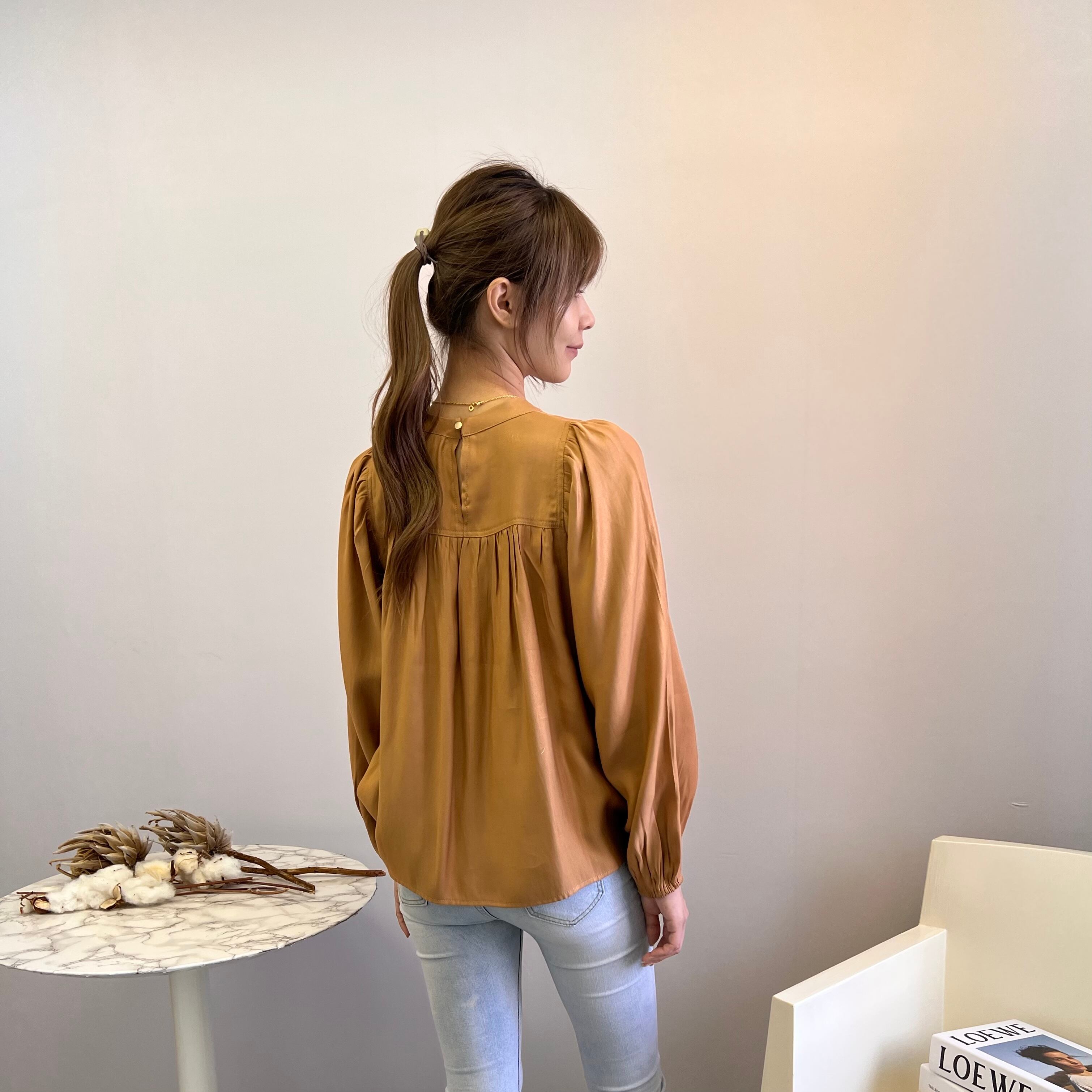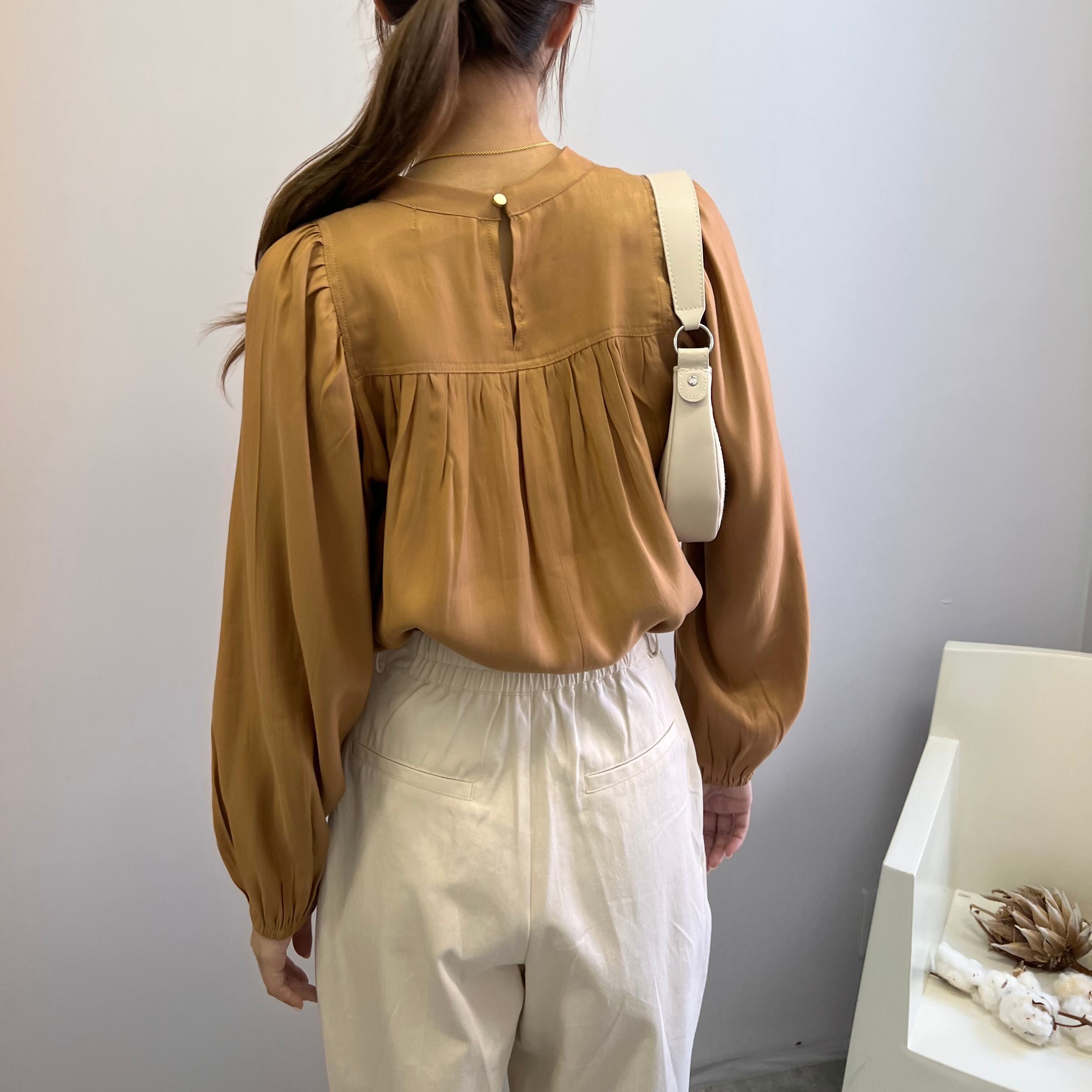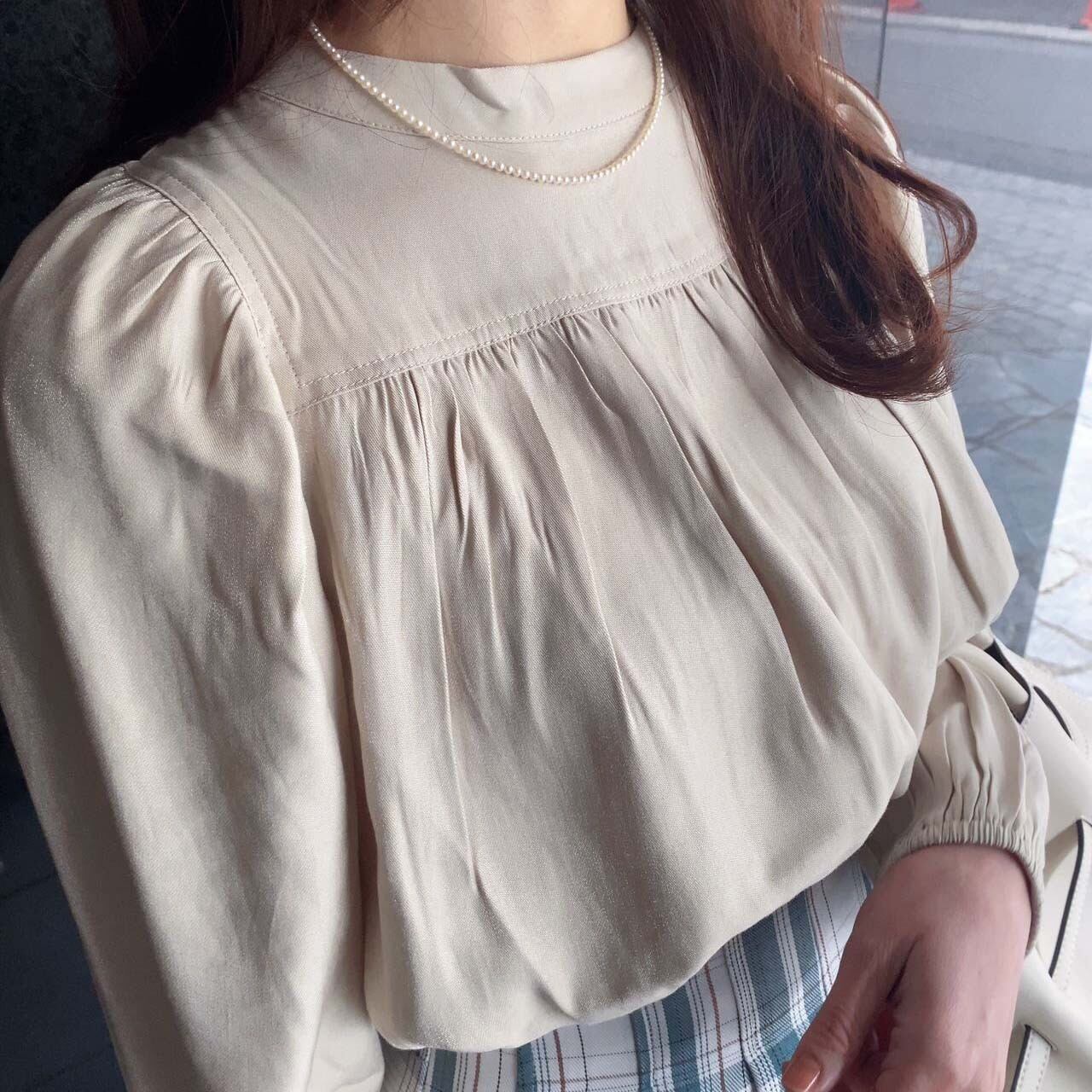 オーロラサテンギャザーブラウス