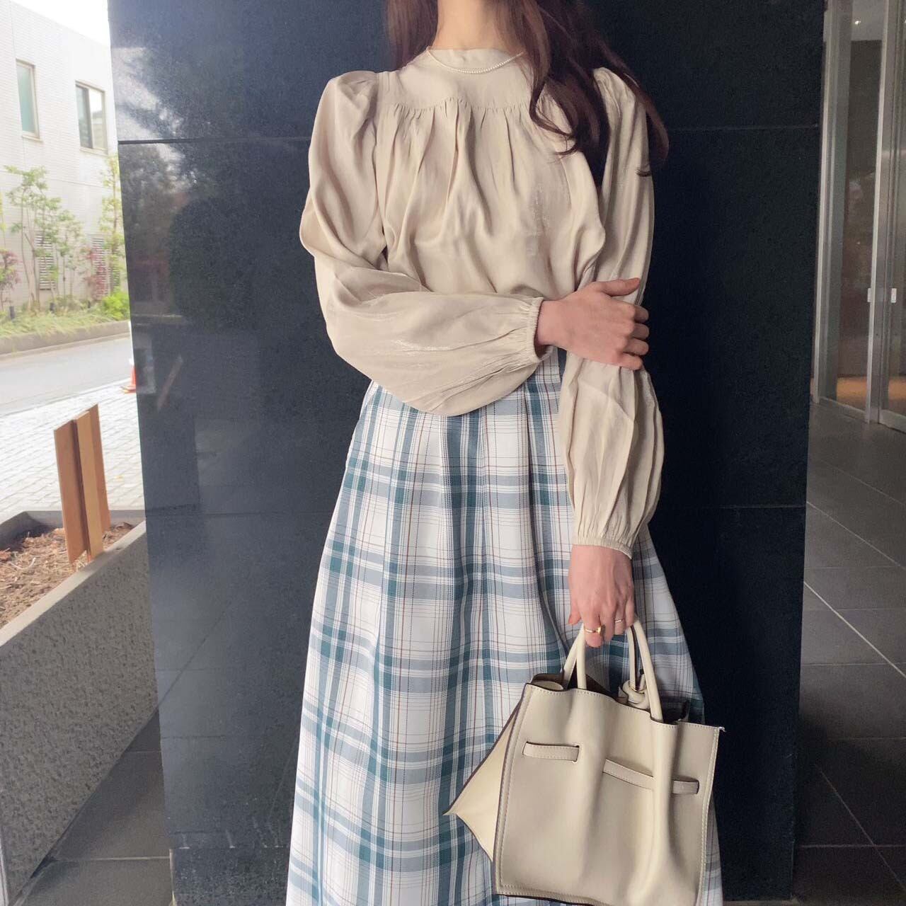 ゆったりシルエットですが、肩が華奢なデザインになっているので着痩せ効果もあり、とても着やすいブラウスです。