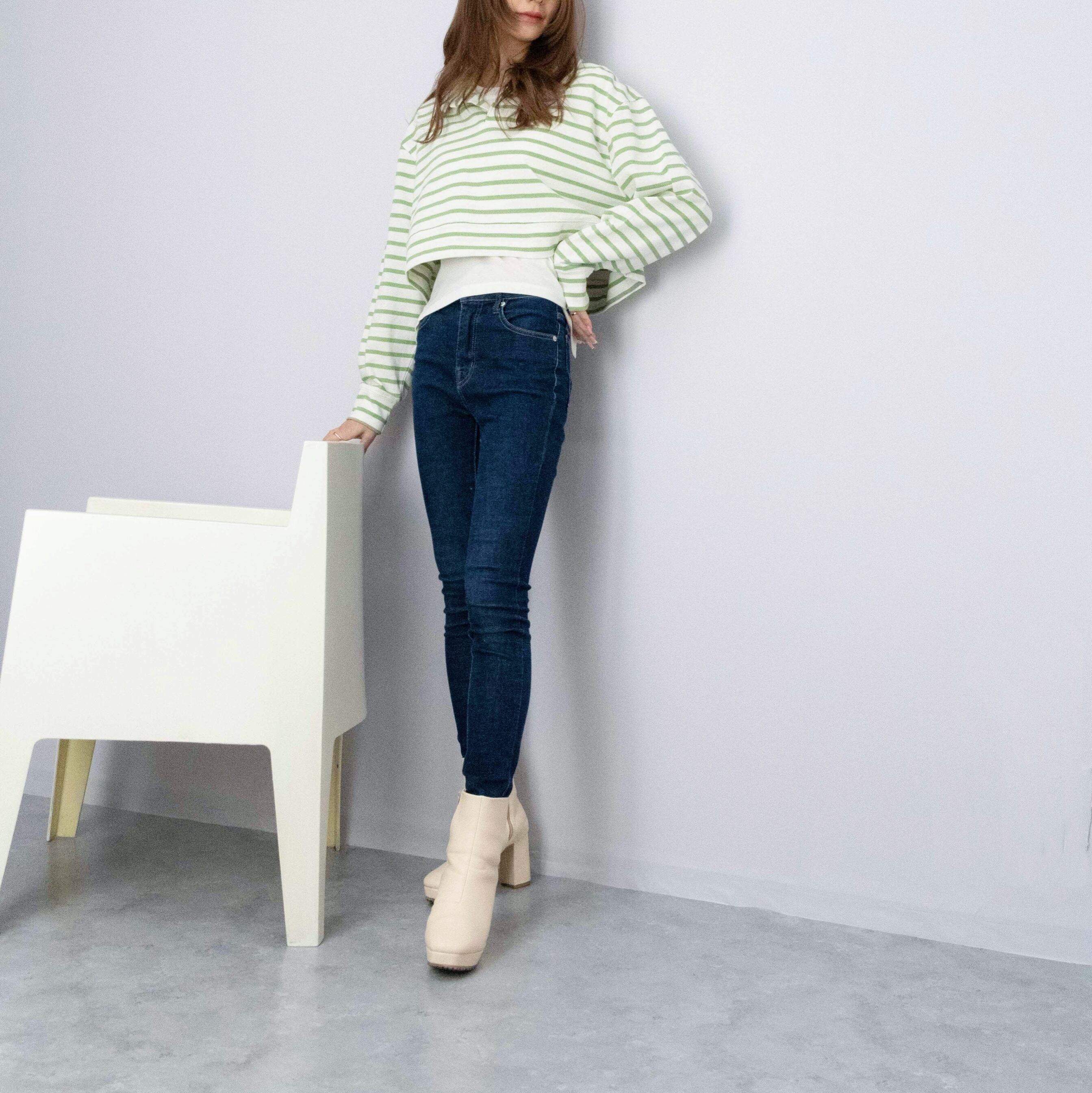 ローウエストのパンツと合わせてヘルシーな肌見せを狙っても良し、インナーを重ね着しても可愛いです。