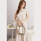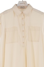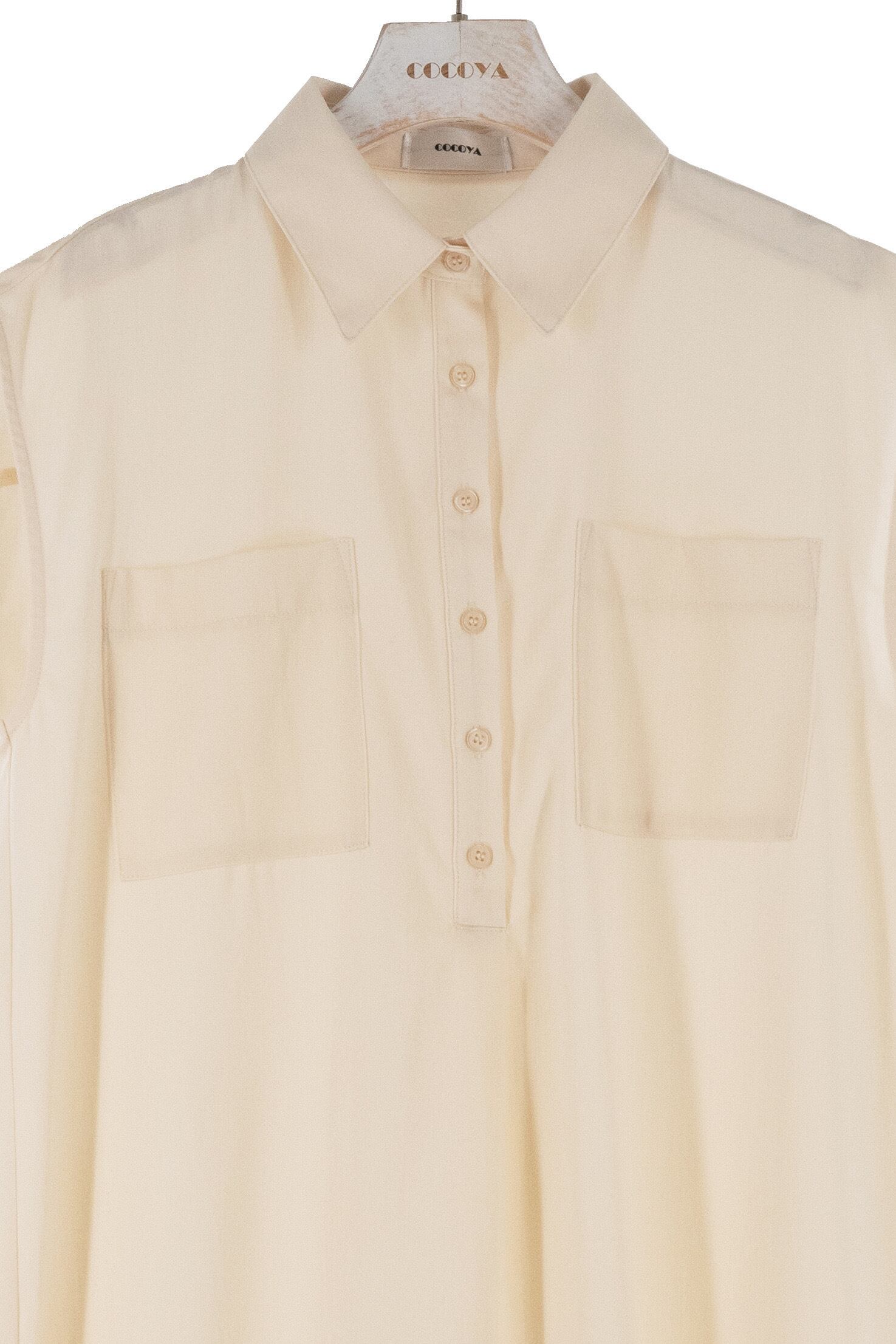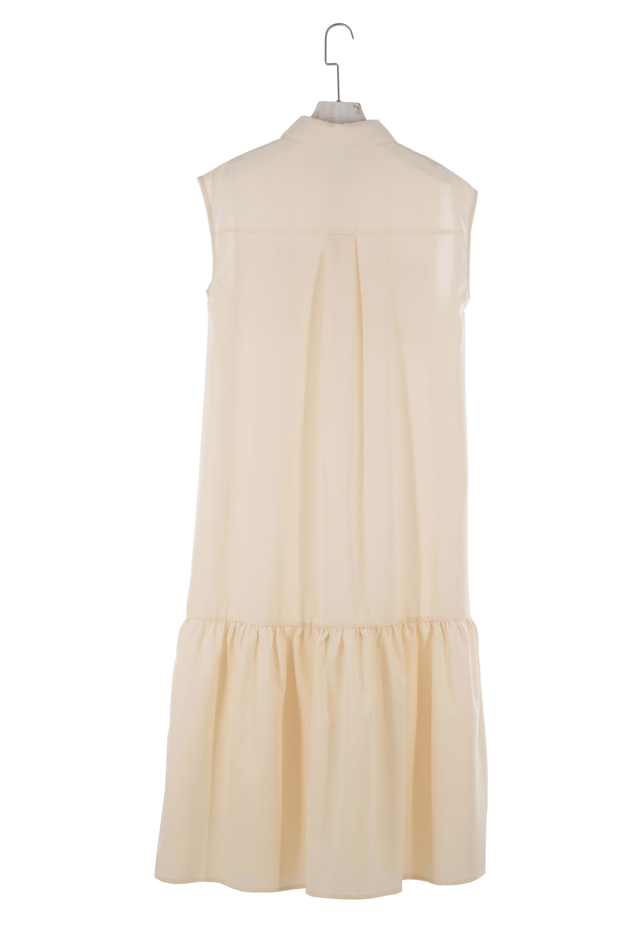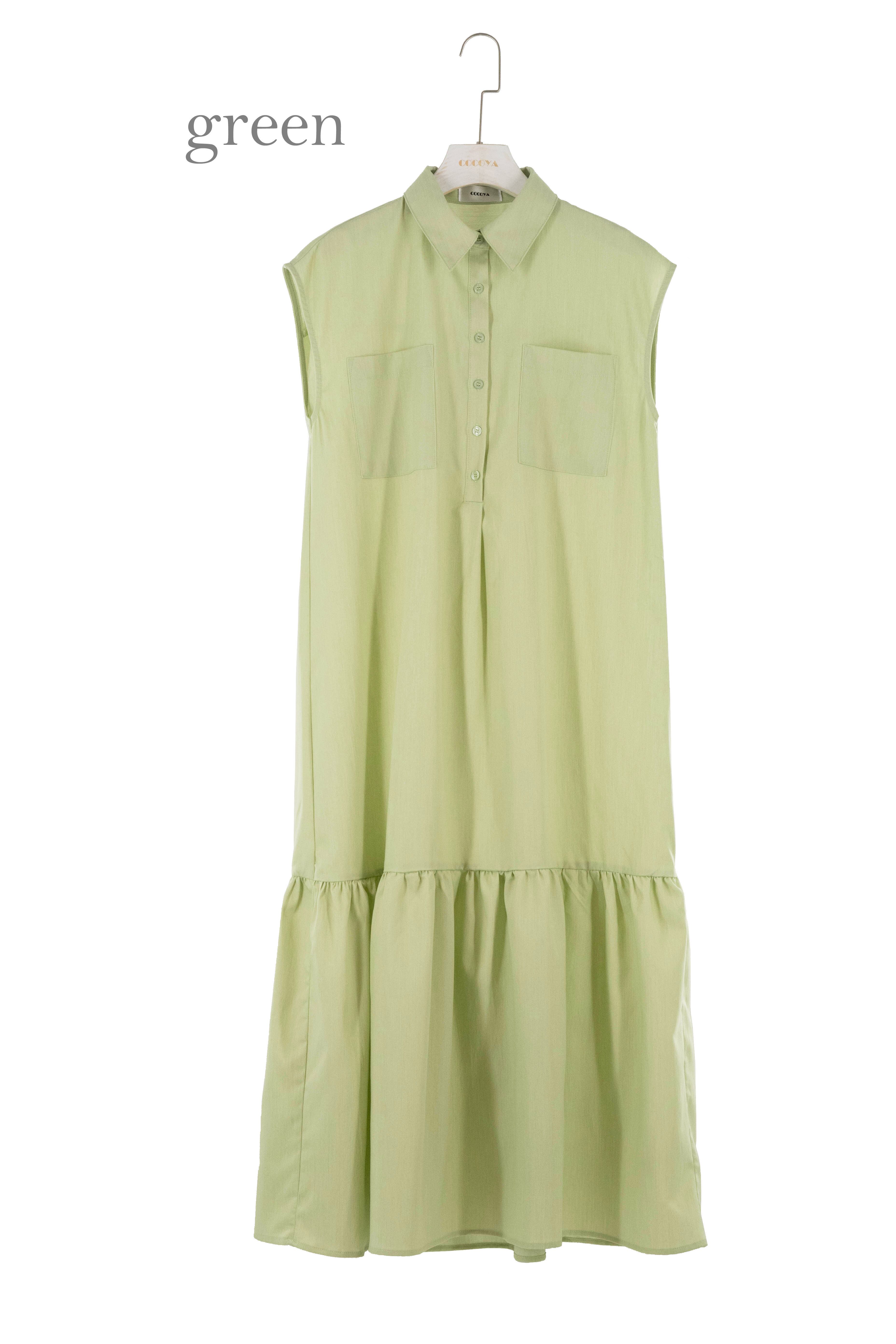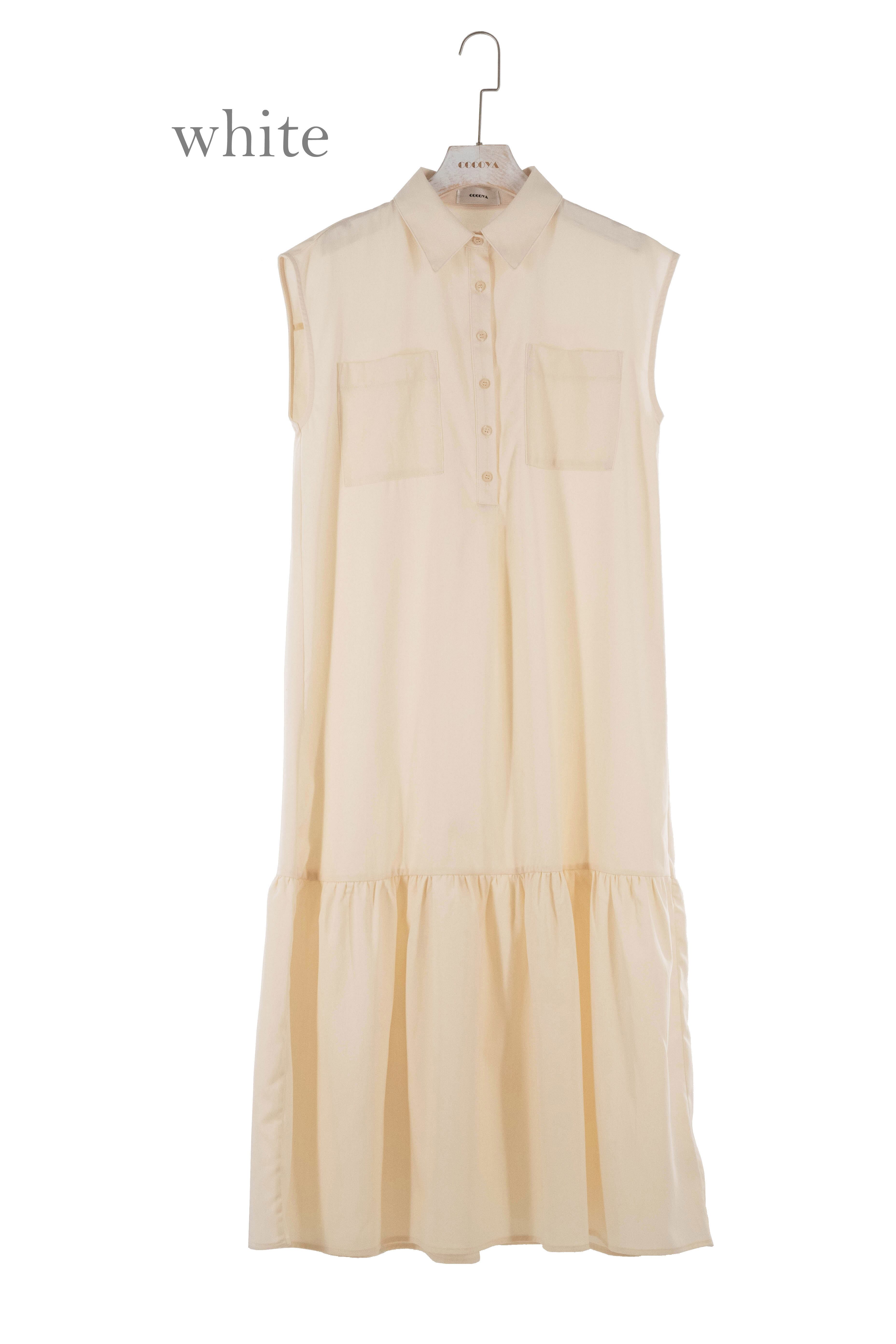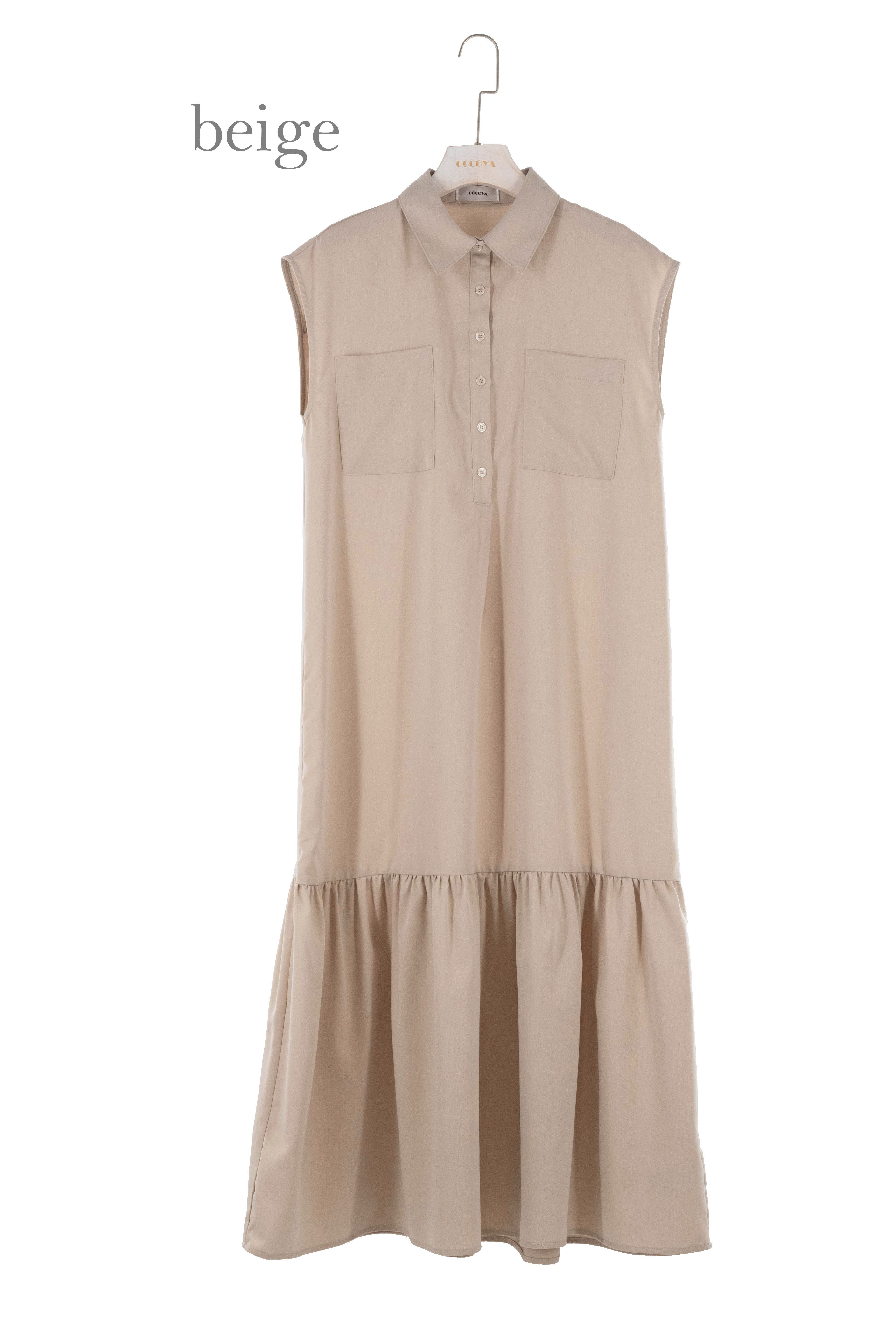 すとんとしたシルエットに裾のギャザー切替が可愛いノースリシャツワンピースです。