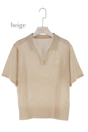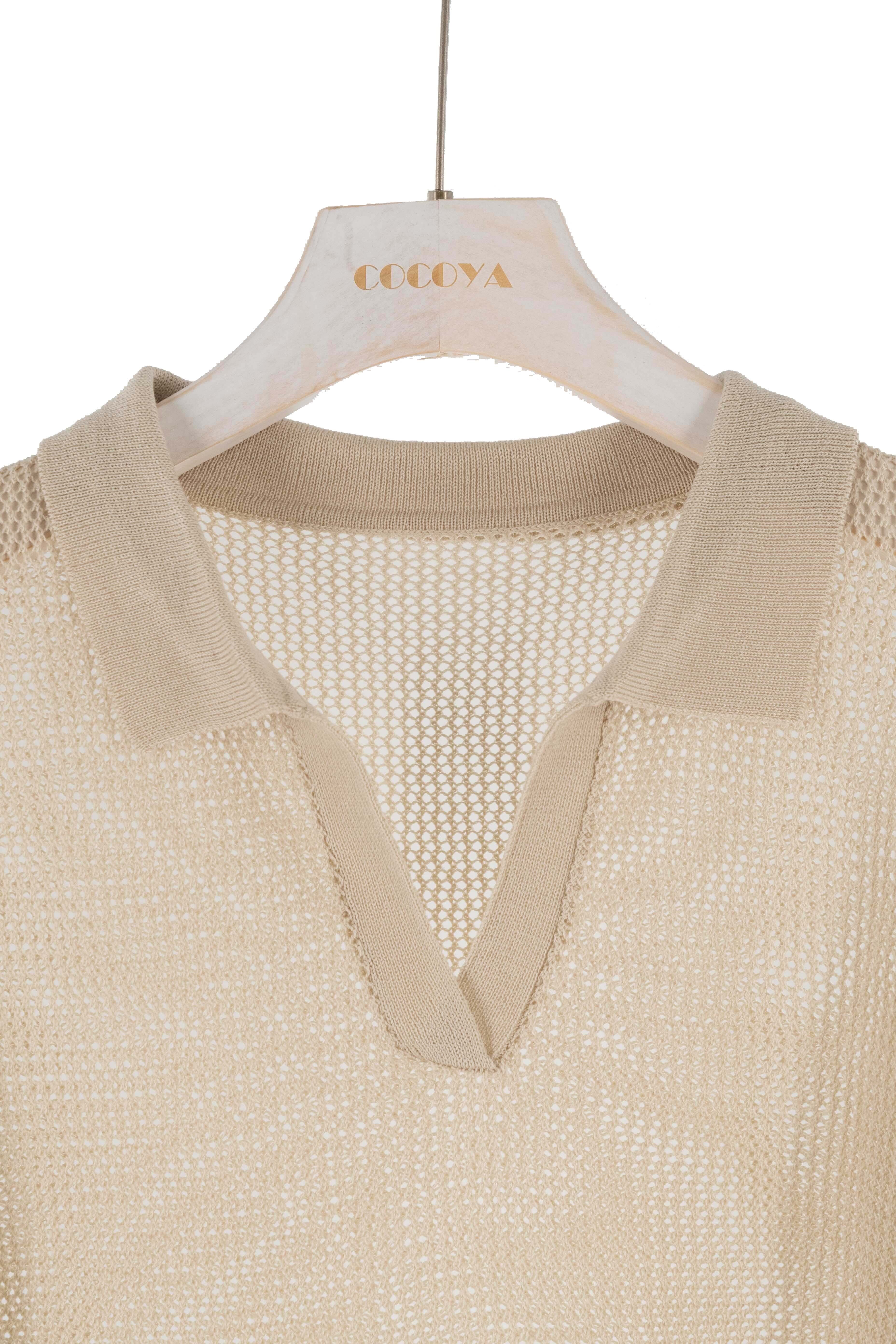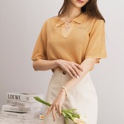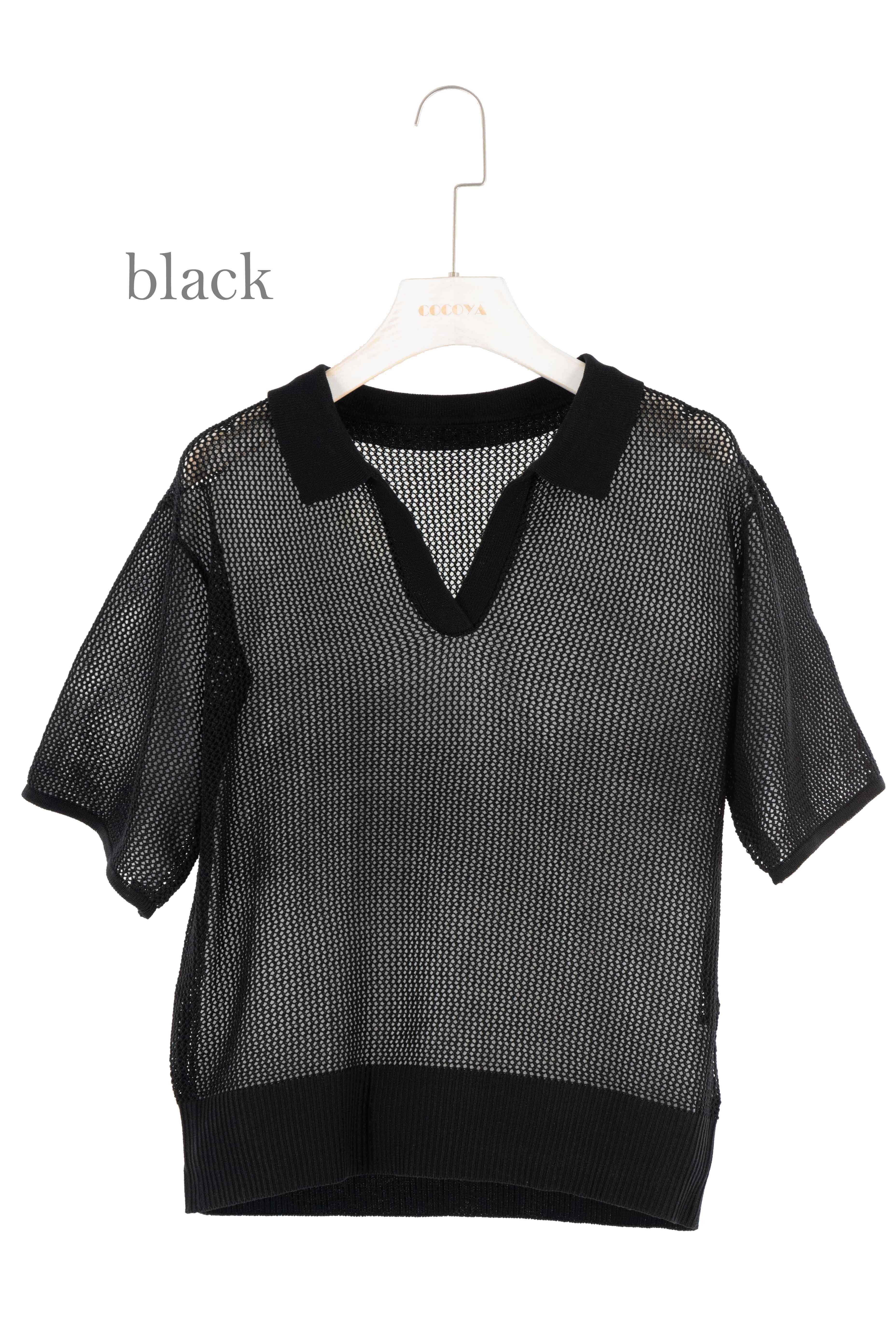 メッシュ編み衿付きニットPO