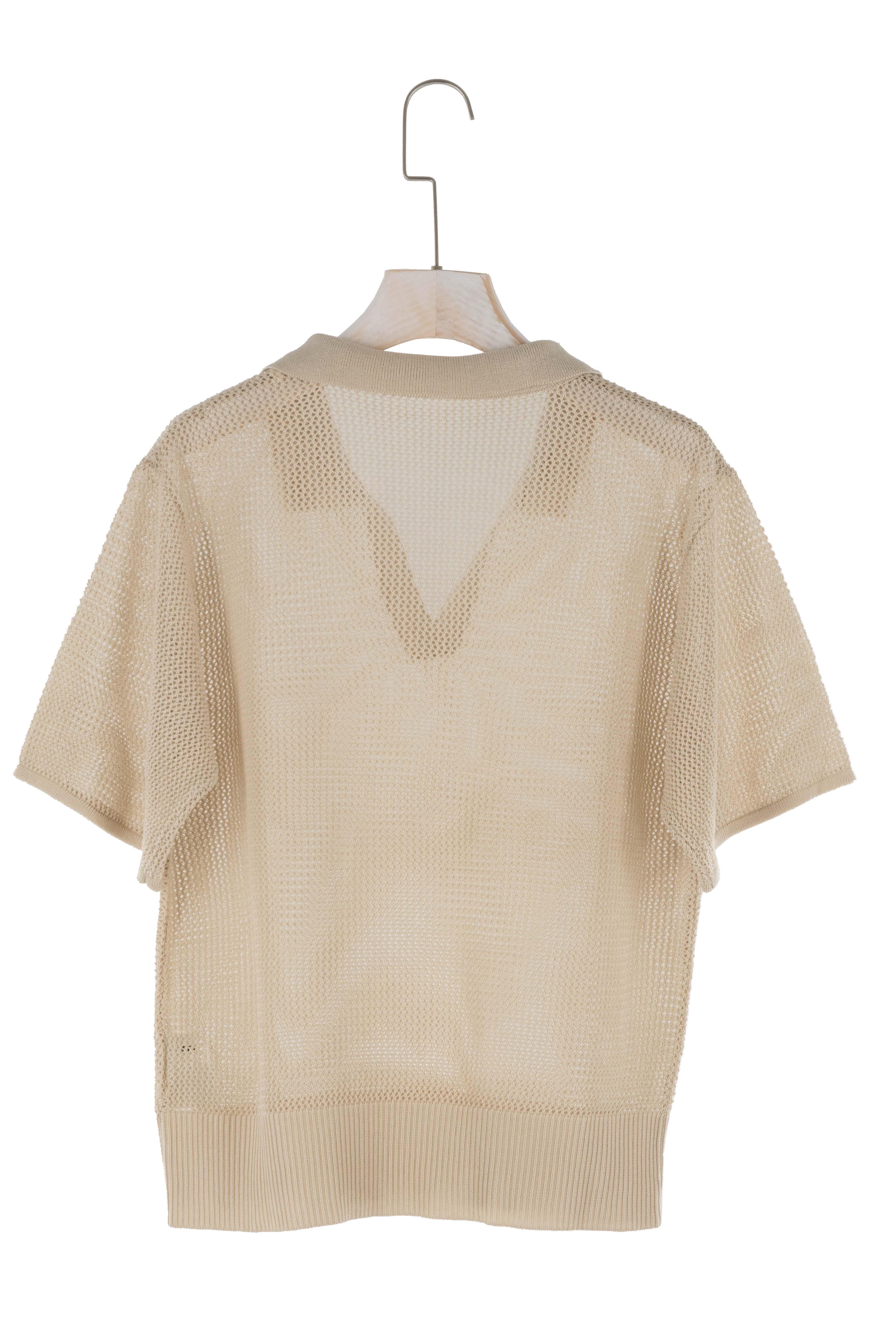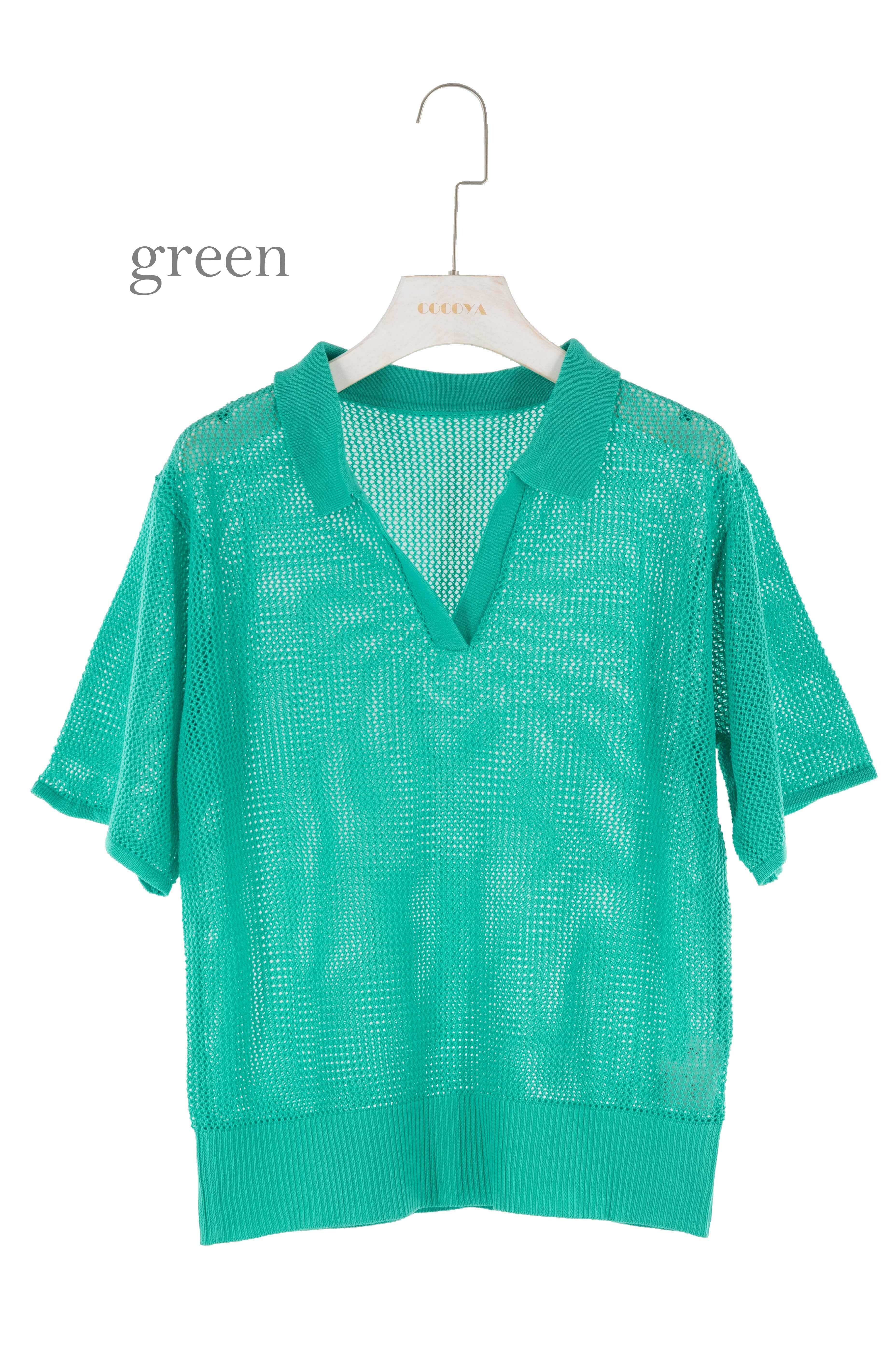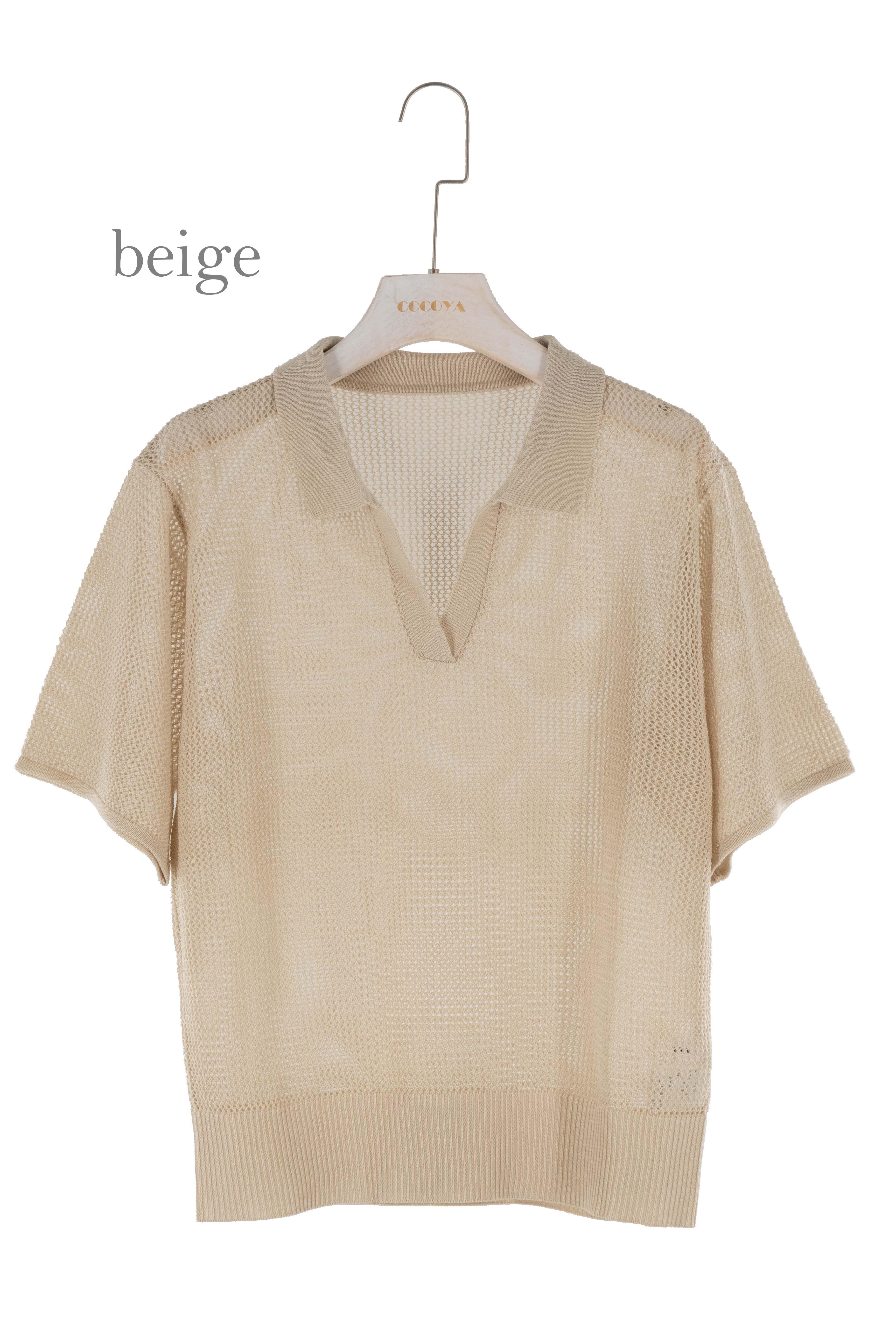 衿付きのメッシュ編みニットです。