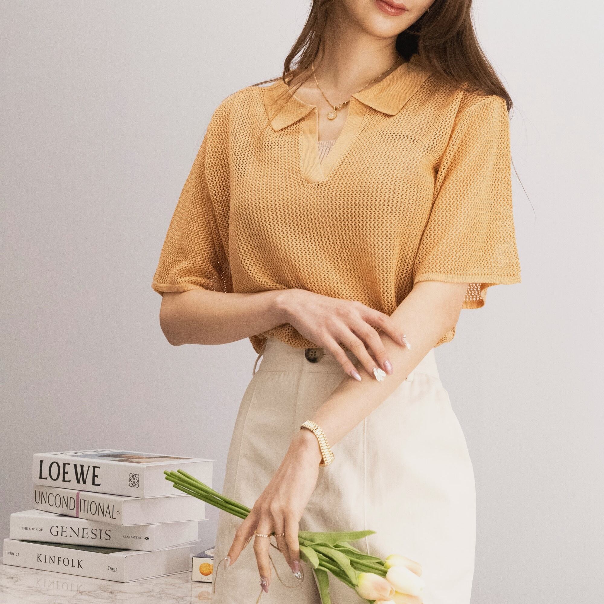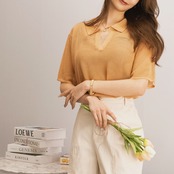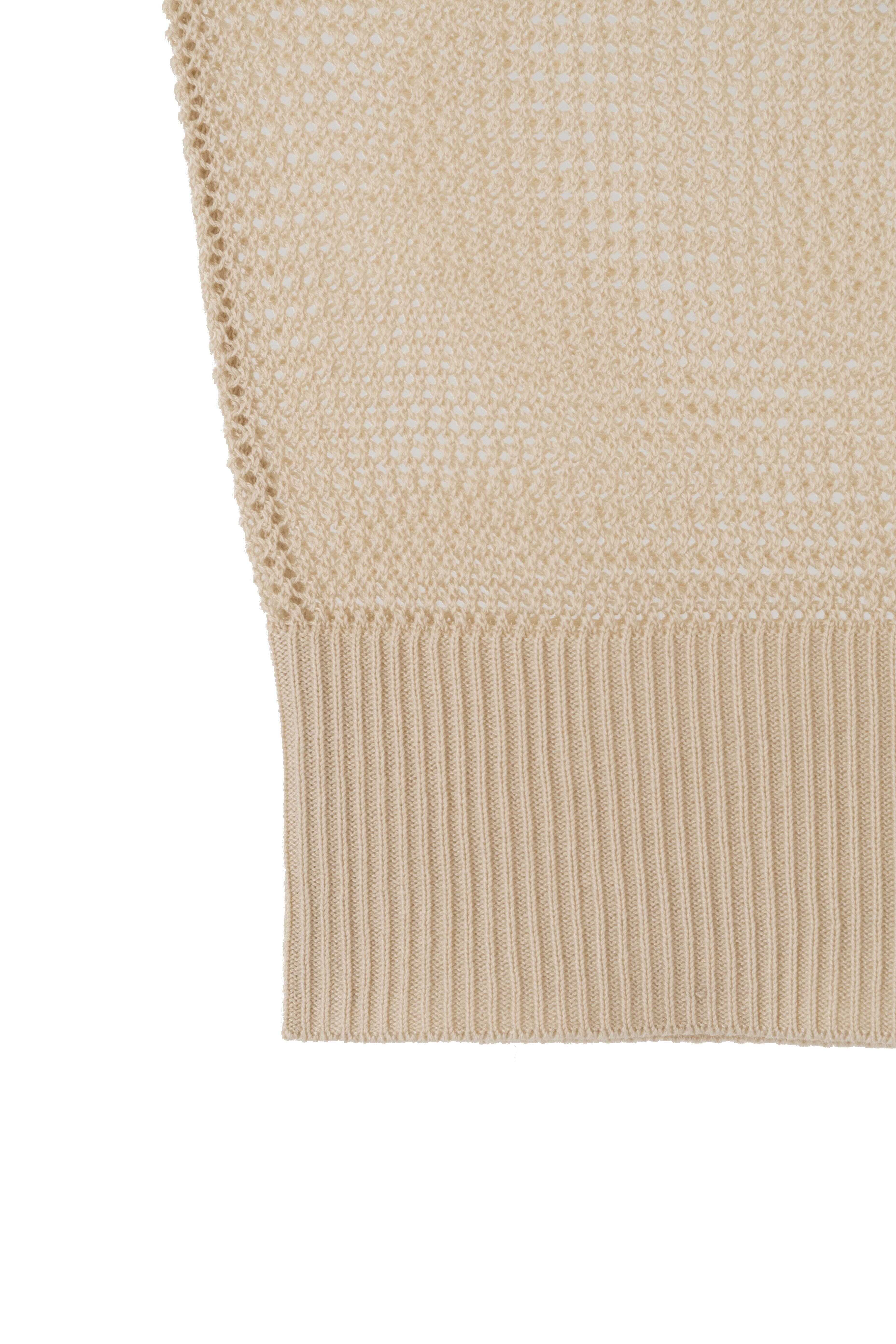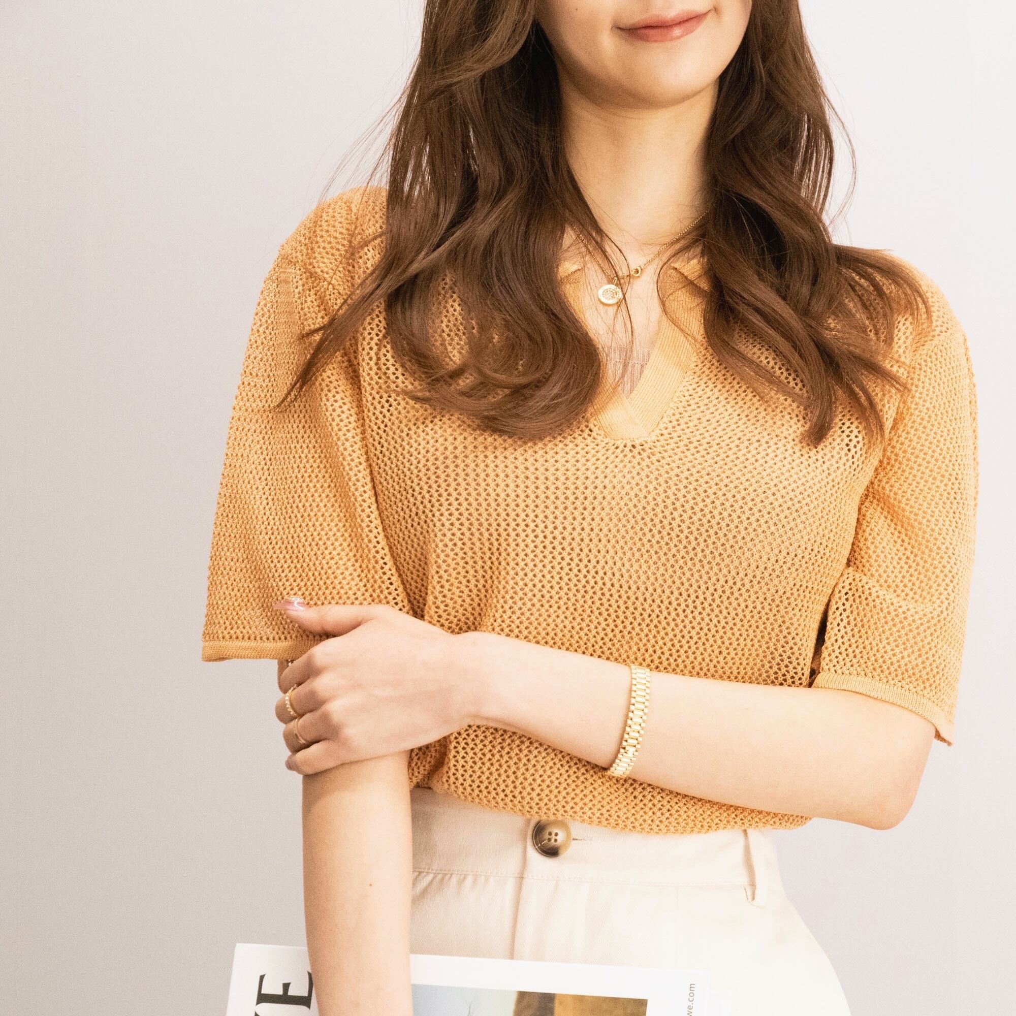 衿付きのメッシュ編みニットです。