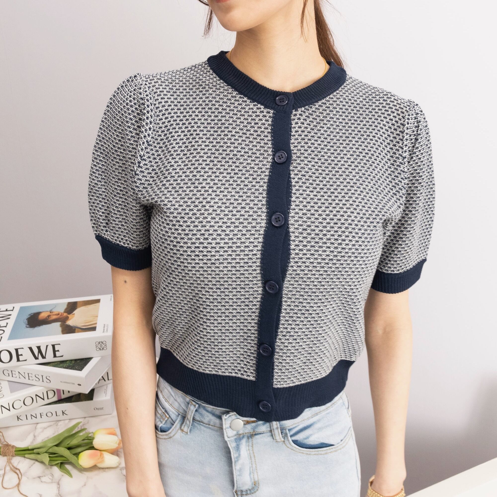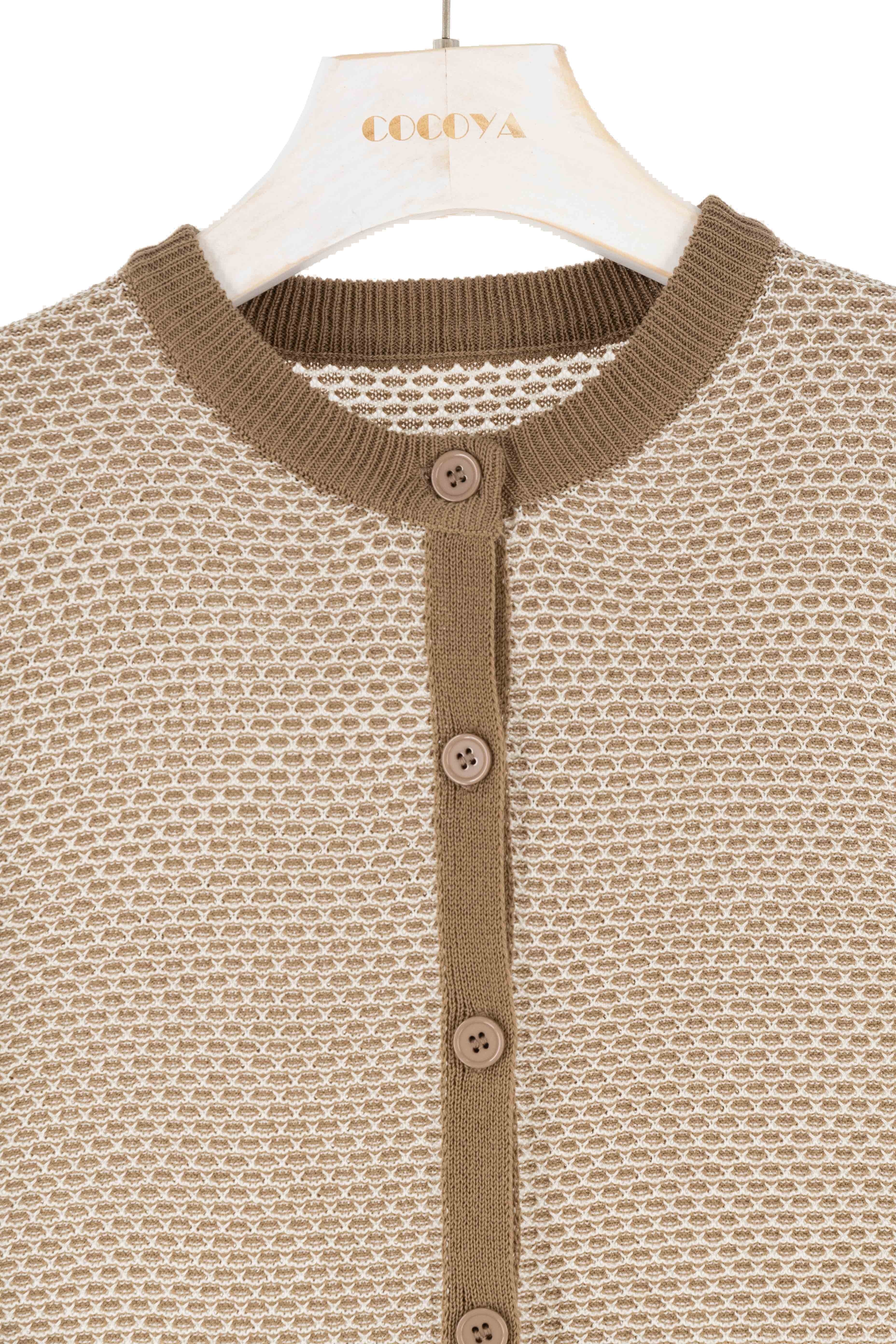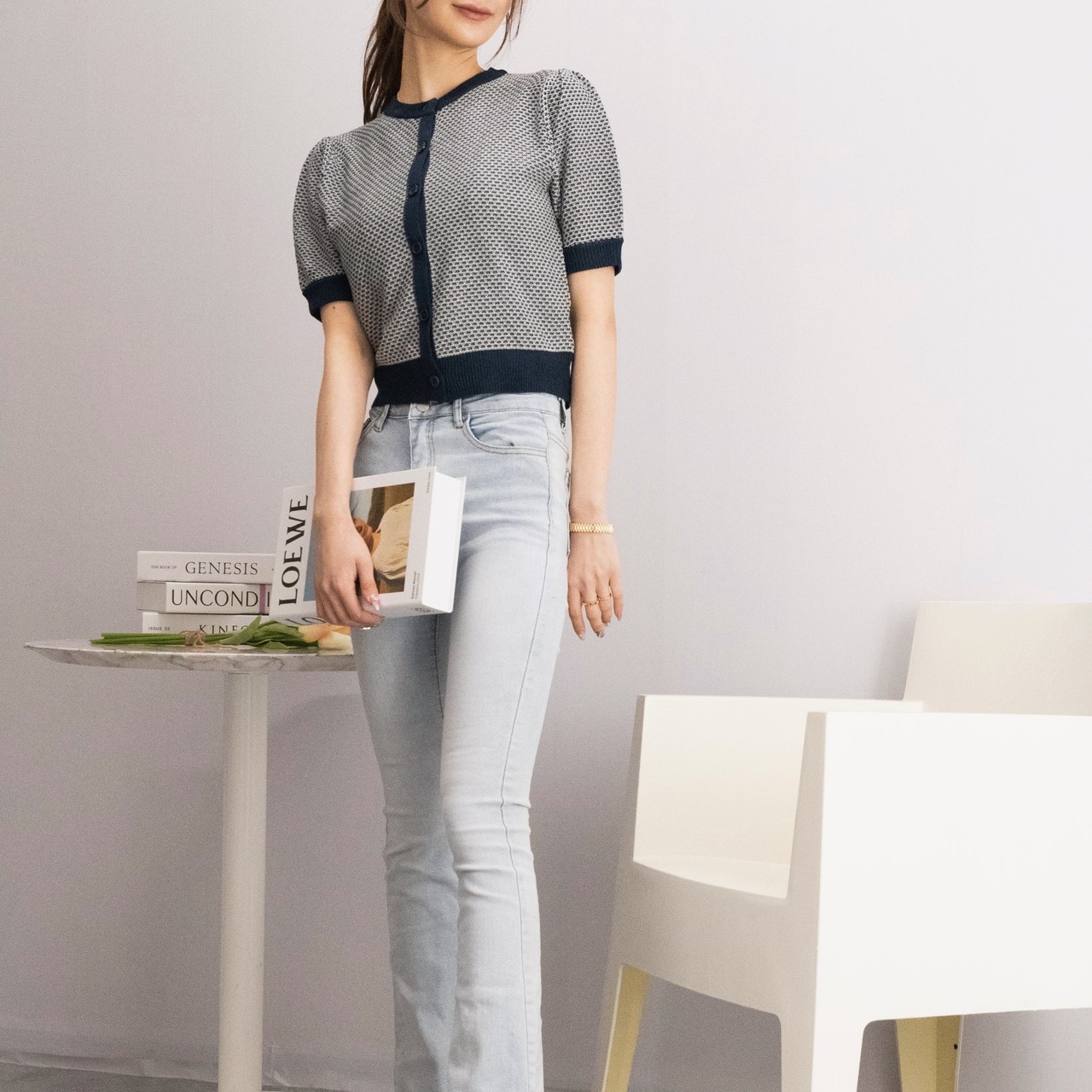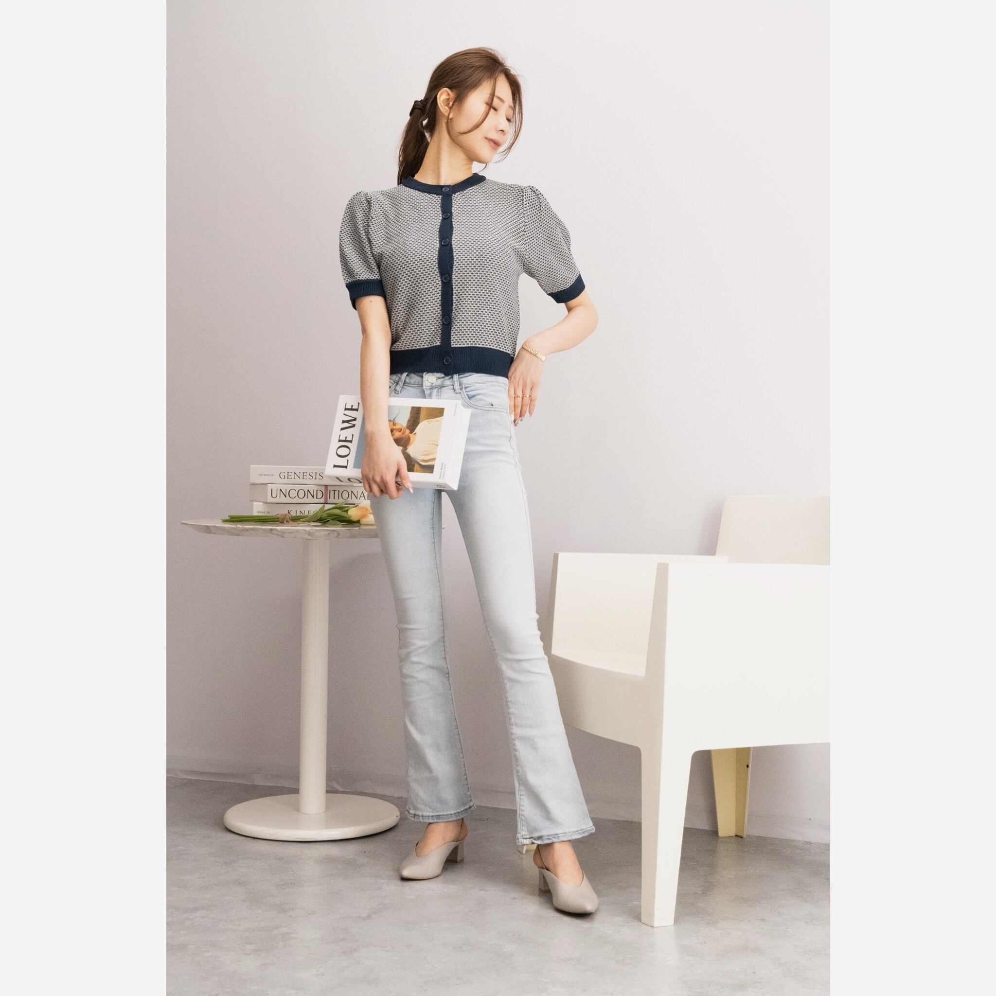 デニムにもスカートにも合わせやすく、羽織りとしても使えるニットです。