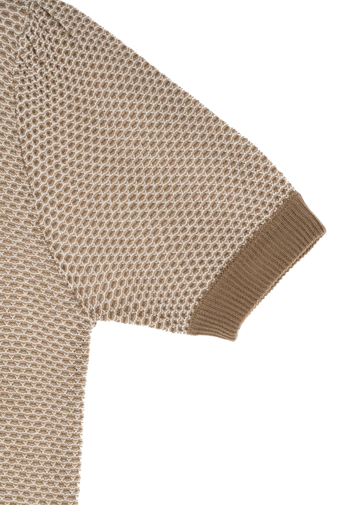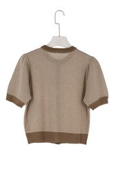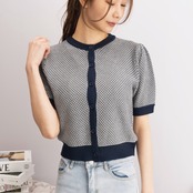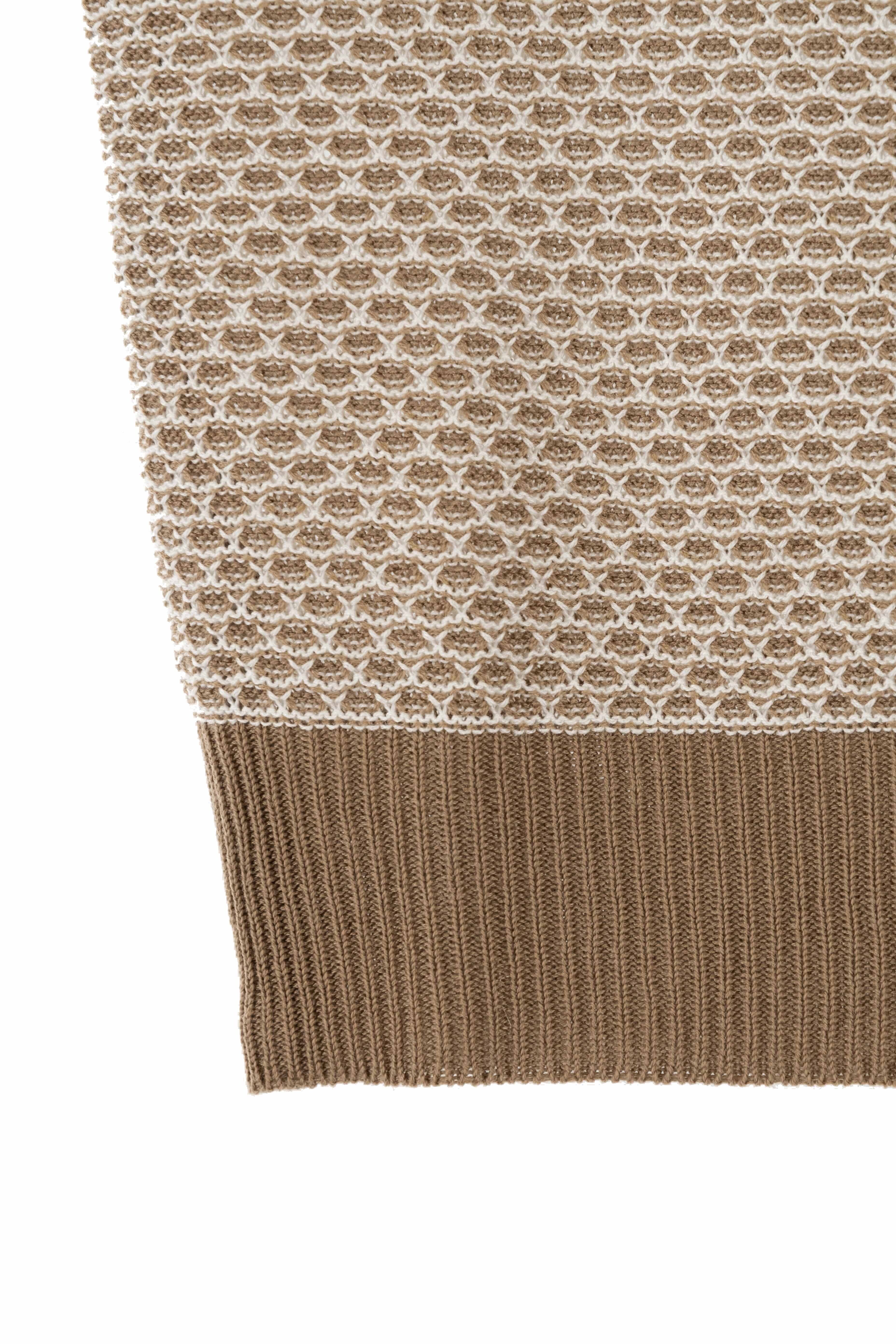 配色とレトロな柄が可愛いラーベン編みのコンパクトニットです。