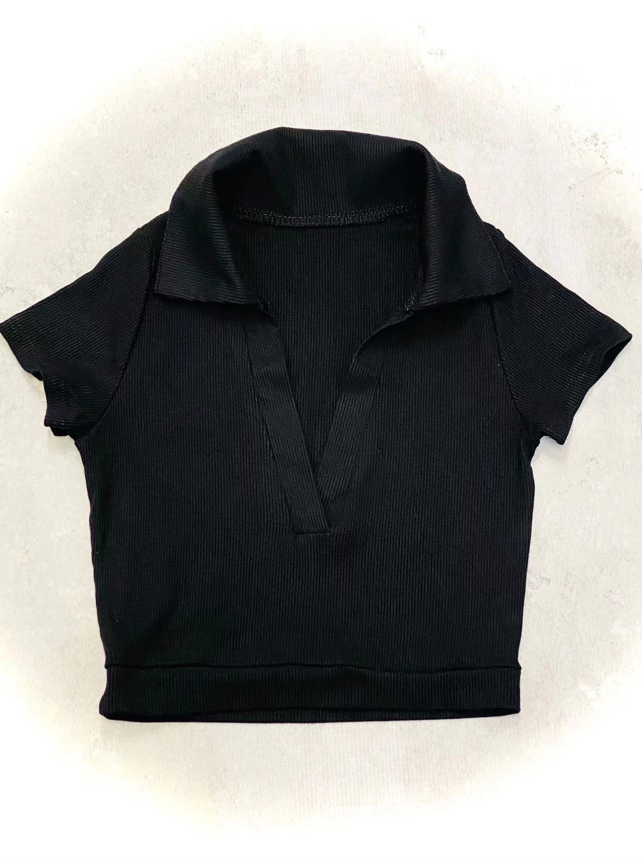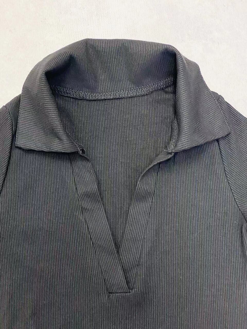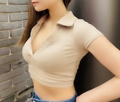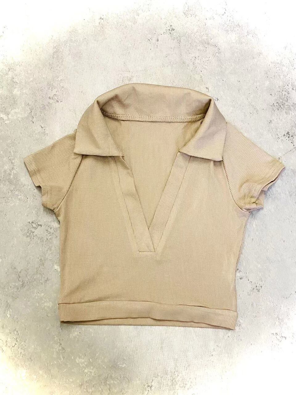 開襟デザインが涼しげで、こなれた印象に。タイトなシルエットがカジュアルになりすぎず、女性らしさを感じられます。